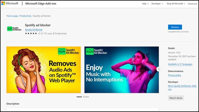 Bước 1: Đầu tiên, hãy truy cập trình duyệt Edge và tải về tiện ích Spotify-Werbeblocker từ đường link dưới đây.