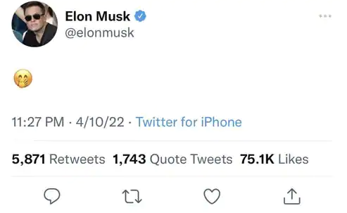 Sau khi tin tức trỗi dậy, Elon Musk tweet và sau đó xóa đi một biểu tượng emoji giữ tay ngần ngừ.