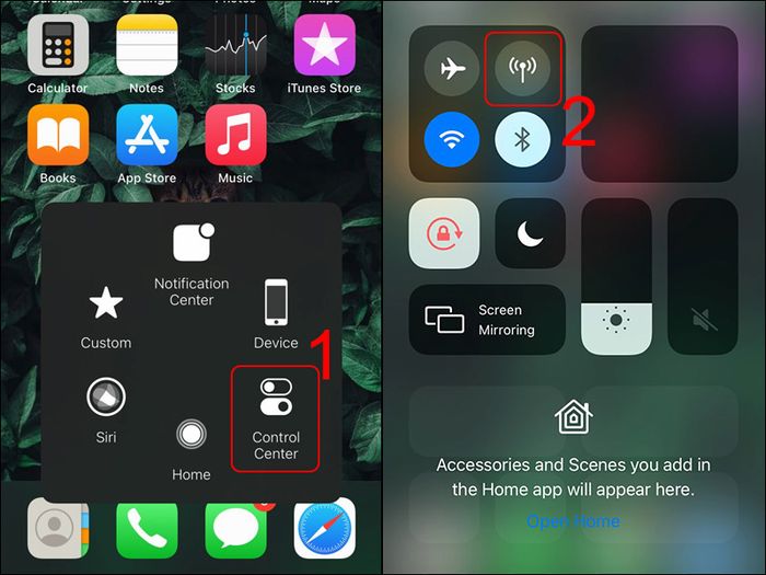Bước 2: Sử dụng nút Home ảo để mở Trung tâm điều khiển (Control Center) => Chọn biểu tượng mạng di động 3G