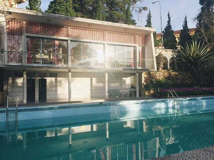 Bể bơi nước nóng trước biệt thự Bạch Ngọc. @Tú Uyên