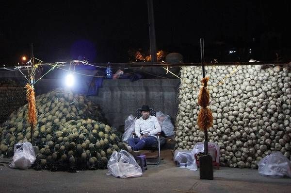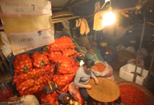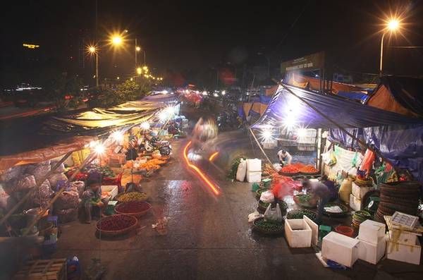 Những thùng hoa quả theo mùa được xếp gọn gàng, hàng ngàn sọt rau, bao tải đủ loại củ trải dài. Sắc màu tươi sáng, không gian ồn ào và phấn khích tại chợ đêm làm say đắm lòng du khách.