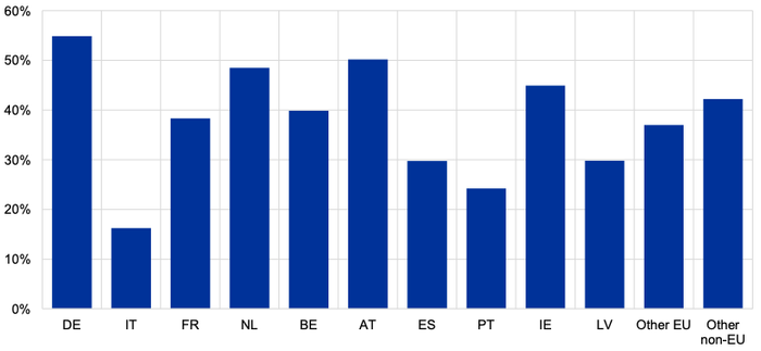 The share of citizens per country who ranked privacy as the most important feature of a digital euro.Người dùng cũng sẽ có khả năng thanh toán offline. Các quan chức cho biết điều này sẽ mang lại quyền riêng tư lớn hơn so với bất kỳ phương thức thanh toán số nào hiện tại. Họ cũng lập luận rằng đồng euro số sẽ giảm phí liên quan đến thanh toán cho người tiêu dùng bằng cách kích thích cạnh tranh cho các đối thủ như Visa, Mastercard và PayPal.