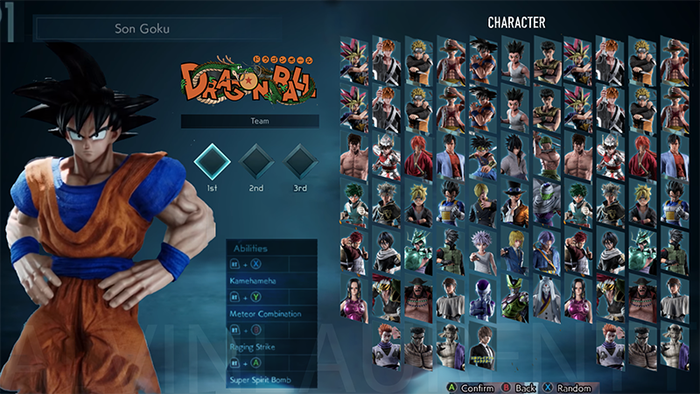 Tất cả nhân vật từ thế giới Shounen Jump (bao gồm các bộ anime và manga nổi tiếng như One Piece, Naruto, DragonBall,...) sẽ hiện diện trong trò chơi với hình ảnh và kỹ năng rất gần gũi với nguyên tác. Bạn sẽ gặp lại Goku, Naruto, Luffy,... ở phe anh hùng và Frieza, Obito, Râu Đen,... ở phe phản diện.