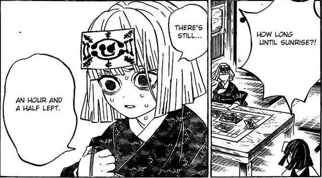 Chiến trường chuyển sang mặt đất cách đây 1 tiếng 30 phút vào lúc bình minh. Đến chương 195, còn lại 40 phút. Tính đến chương 195, Nezuko đã đi được 50 phút.