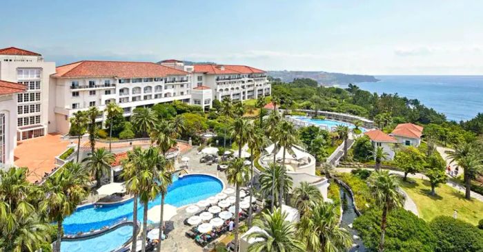 The Shilla Jeju không chỉ là khu nghỉ dưỡng cao cấp mà còn mang đến tầm nhìn ra biển Thái Bình Dương rộng lớn, ngọn núi Halla tráng lệ và bầu trời đầy tinh tú về đêm. Với diện tích rộng, phong cách kiến trúc hòa trộn Địa Trung Hải và Châu Âu cổ điển sẽ khiến bạn ấn tượng.