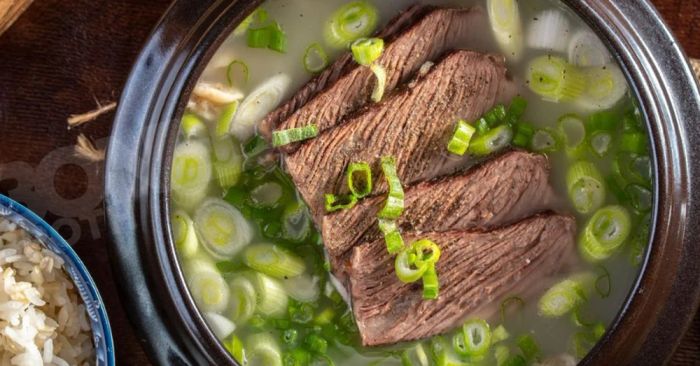 Súp hầm từ xương bò ở Hàn Quốc có hương vị ngọt thanh, bổ dưỡng. Nước dùng thường được gia vị bằng muối, tiêu, tỏi... Theo khẩu vị cá nhân. Thường ăn kèm cơm, rất tốt cho sức khỏe.