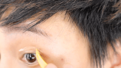 Youtuber Ty Lê đã chia sẻ một phương pháp đơn giản để dán mí mắt chỉ trong 1 phút 30 giây. Thực hiện bằng cách bôi keo đều lên miếng mí giả và dán lên mí mắt theo hướng dẫn để tạo đường mí rõ ràng, chuẩn bị cho bước trang điểm mắt tiếp theo.