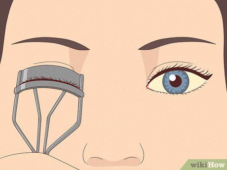 Làm cong lông mi của bạn để mở rộng ánh mắt. Kẹp lông mi ở gốc (chú ý không kẹp vào da) bằng