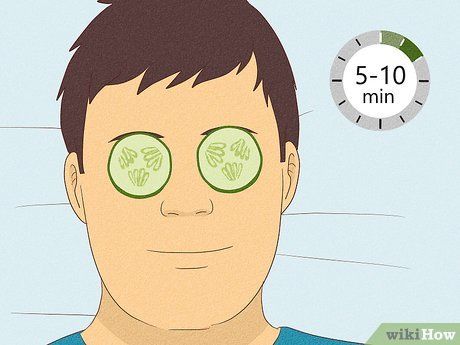 Nghỉ miếng dưa chuột lên mí mắt đã đóng lại của bạn trong 5-10 phút. Miếng dưa chuột là một phần không thể thiếu của spa vì lý do tốt. Cắt những lát mỏng của dưa chuột và đặt chúng trực tiếp lên mí mắt của bạn. Nằm xuống và thư giãn trong 5 đến 10 phút, sau đó loại bỏ chúng để mắt trở nên sáng hơn và khỏe mạnh hơn.