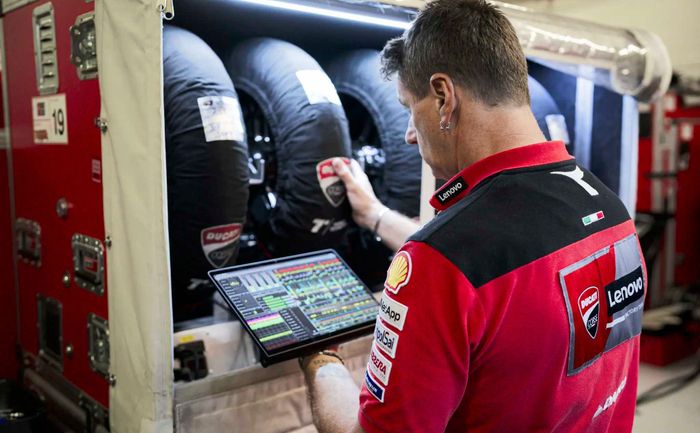 Không phải là ngẫu nhiên khi nhà tài trợ chính của Ducati là Lenovo. Hai bên hợp tác không chỉ để bán được nhiều laptop hơn mà còn để Ducati có thể sử dụng các máy tính mạnh mẽ của Lenovo để tính toán và mô phỏng khắp mọi nơi, từ ga-ra, xe tải chở đội đến nhà máy chính. Điều này cũng giải thích tại sao các hãng xe khác đang tranh giành để thu hút các kỹ sư của Ducati, đặc biệt là Alberto Giribuola, người từng làm trưởng nhóm kỹ thuật cho Enea Bastianini và Andrea Dovizioso. Hiện nay, Giribuola đang có quyền quản lý ga-ra của KTM.