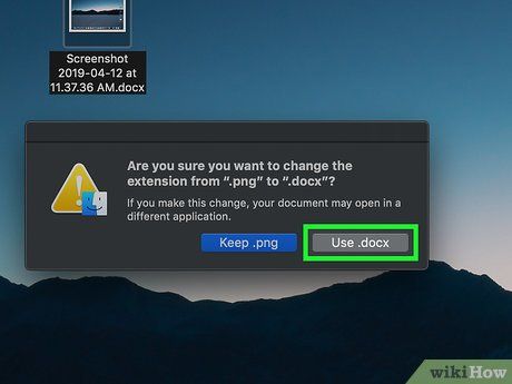 Thay phần mở rộng hiện tại bằng đuôi .docx. Nếu bạn đang làm việc với tập tin file.jpg, hãy thay phần mở rộng '.jpg' bằng .docx.