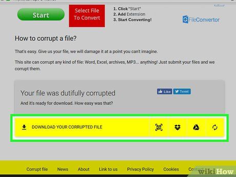 Nhấp vào nút Tải tập tin bị hỏng xuống (Tải tập tin bị hỏng xuống). Tùy chọn này sẽ hiện ra sau khi tập tin đã được làm hỏng.