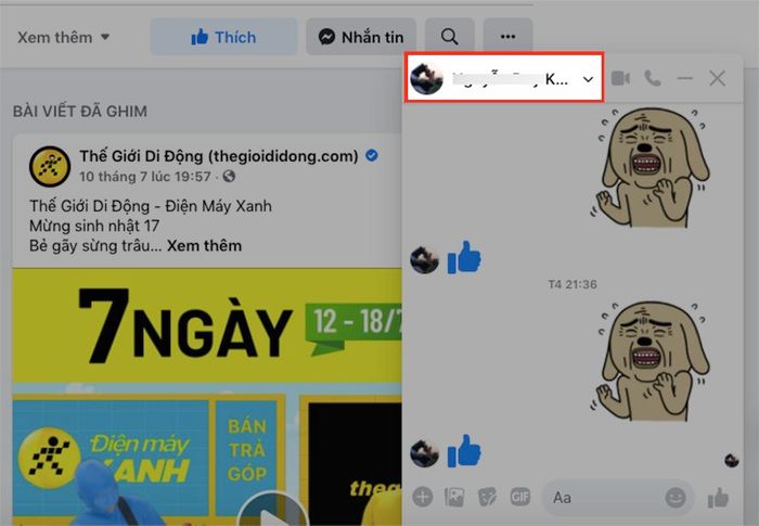 Bước 1: Mở cuộc trò chuyện với ai đó trên trang web của Facebook > Nhấn vào tên Facebook của bạn bè trong đoạn chat.