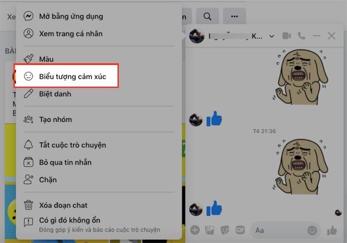 Bước 2: Chọn Biểu tượng cảm xúc.