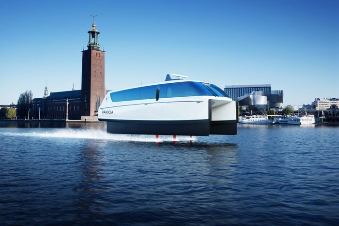 Ba bước trên sóng nước, chiếc Candela P-12 chạy qua Hồ Mälaren gần Stockholm, Thụy Điển. Với chỉ có cánh thủy canh cắt qua nước, chiếc thuyền để lại gần như không sóng, không tiếng ồn, hoặc khí thải—một biến đổi lớn từ những chiếc phà chạy bằng dầu diesel khổng lồ hiện tại đưa người đi làm qua quần đảo tạo thành thủ đô Thụy Điển.