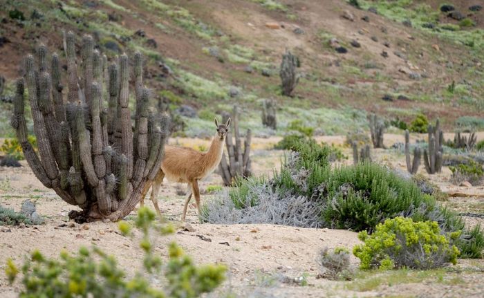 Một con guanaco trong công viên Pan de Azúcar. Số lượng của chúng trước đây lên đến hơn 500 nhưng hiện đang giảm dần xuống dưới 100 con. Ảnh: Flickr. sương mù biển