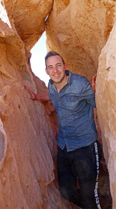Patrick Jung, một nhà nghiên cứu hiện làm việc tại Đại học Khoa học Ứng dụng tại Kaiserslautern, Đức, đã khám phá ra cộng đồng vi sinh vật sống trên lớp vỏ đá cứng tại Pan de Azúcar vào năm 2017. Ảnh: Quanta Magazine.