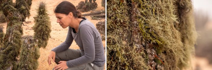 Bà Van den Brink chỉ ra cây địa y xương rồng, cây giữ lại những giọt nước sương mù mà động vật hoang dã của công viên sử dụng. Ảnh: Zack Savitsky.