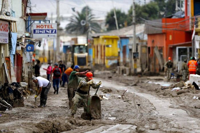 Cư dân dọn dẹp sau lũ lụt tại thị trấn Chañaral, nằm phía nam công viên Pan de Azúcar ngày 8/4/2015. Ảnh: Climate.