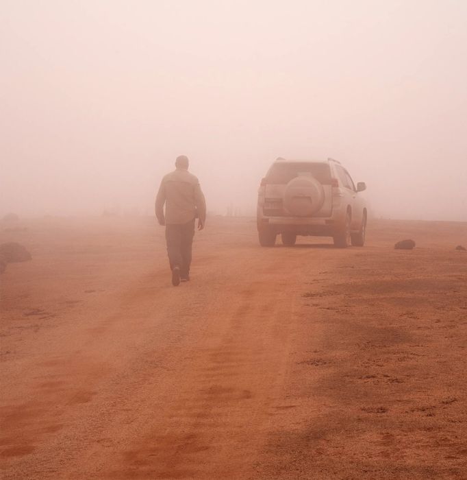 Gutiérrez Alvarado quay lại chiếc xe trong sương mù. Lớp vỏ sinh học của sa mạc rất nhạy cảm với việc bị xe cộ và người đi bộ du lịch dài ngày đạp lên. Ảnh: Zack Savitsky.Gutiérrez Alvarado đánh giá cao sự mở rộng của lớp vỏ đá cứng. Anh nói, với tư cách là một kiểm lâm viên, trách nhiệm của anh là bảo vệ cảnh quan của công viên và tất cả các sinh vật sống trong đó khỏi sự thiếu thận trọng của du khách và các hoạt động khai thác xâm phạm. Trong một nghiên cứu được công bố vào tháng 4 với sự đồng tác giả của Jung và van den Brink, ông đã thúc đẩy ban quản lý công viên quốc gia Chile xem xét việc bảo vệ lớp vỏ sinh học trong kế hoạch bảo tồn thiên nhiên của họ.“Chúng tôi cần phải làm rõ lý do tại sao chúng tôi phải đóng cửa một số con đường hoặc đường mòn để không ai có thể tiếp cận,” Gutiérrez Alvarado nói. “Chúng tôi không áp đặt quy định, vì vậy nghiên cứu là biện pháp phòng ngừa của chúng tôi.”Nhưng lớp vỏ sinh học đang đối mặt với mối đe dọa nghiêm trọng hơn cả dấu vết của con người: biến đổi khí hậu.Vào năm 2018, Belnap, Büdel và các đồng nghiệp đã công bố một nghiên cứu ước tính về cách các lớp vỏ sinh học trên khắp thế giới sẽ đối mặt thế nào với biến đổi khí hậu và hoạt động thâm canh. Các mô hình của họ dự đoán rằng đến cuối thế kỷ này, phủ sóng toàn cầu của lớp vỏ sinh học có thể giảm từ 25% trở lên. Sự suy giảm đó có thể làm cho đất trở nên yếu đuối hơn và khiến bụi mù lắng xuống tuyết, giữ lại nhiều nhiệt độ và làm nặng thêm vấn đề biến đổi khí hậu trên hành tinh. “Sau đó, chúng ta sẽ bắt đầu thấy sự tương đồng với hành tinh Sao Hỏa,” van den Brink nói.Tuy nhiên, trong mô hình này, lớp vỏ sinh học ở Atacama nổi bật hơn. Theo các dự đoán về khí hậu, khi hầu hết các lớp vỏ khác biến mất, thì cát sạn dường như phát triển mạnh mẽ hơn.Khi mặt trời lặn, tôi, Gutiérrez Alvarado, và van den Brink leo lên một đồi cát để nhìn ra những dãy đồi xa xôi đang bị sương mù phủ kín. Từ đỉnh đồi, tôi có thể nhìn thấy rõ phạm vi của vùng cát sạn và sự tranh đấu không ngừng của nó để giành lãnh thổ. Tôi không khỏi suy nghĩ rằng suốt thời gian qua, những tảng đá có thể đã giữ một bí mật: rằng nếu như những vi khuẩn như thế này là những sinh vật đầu tiên xuất hiện, thì chúng cũng có thể là những sinh vật cuối cùng ra đi.Theo bài viết của Zack Savitsky trên Quanta Magazine và trên trang web Edubaba.