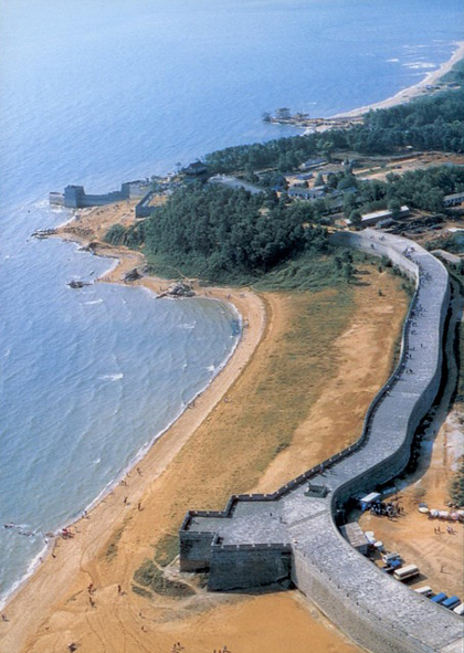 Phần trường thành gặp vịnh biển Bột Hải (phía đông bắc Trung Quốc) mang tên Lão Long Đầu, được cho là điểm bắt đầu của Vạn Lý Trường Thành, với hình dáng như đầu một con rồng cúi xuống biển uống nước. Xây từ năm 1579, phần thành vươn hơn 20 m ra biển, du khách có thể đi bộ tới đây và nhìn thẳng ra đại dương.