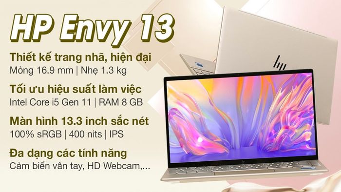| Laptop HP Envy 13 ba1537TU i5 (4U6P0PA) | 13.3 inch | Card tích hợp - Intel Iris Xe Graphics | Windows 11 Home SL | Intel Core i5 Tiger Lake - 1135G7 | 256 GB SSD NVMe PCIe | Vàng | 22.890.000 VNĐ (giảm 13% còn 19.790.000 VNĐ) |