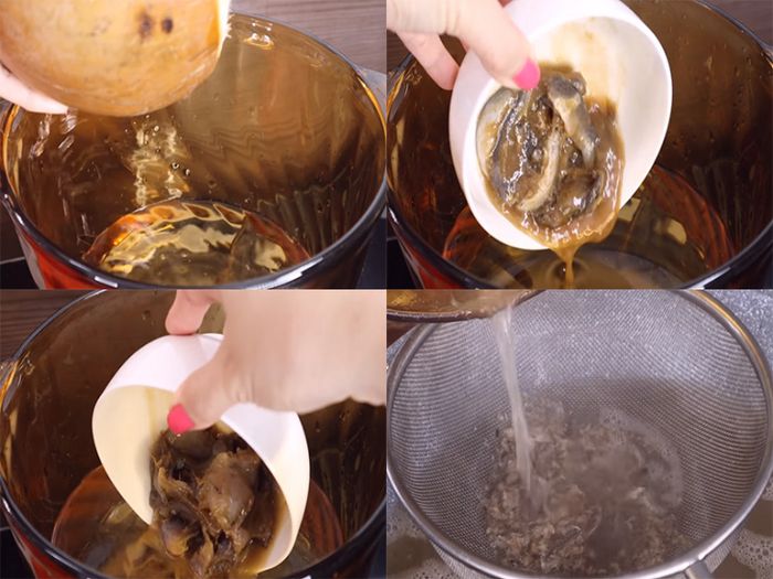 Đun khoảng 5 phút cho mắm cá hòa quyện, chỉ còn xương thì tắt bếp. Sau đó, lọc qua rây để lấy nước lèo thơm ngon.