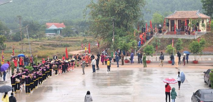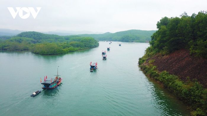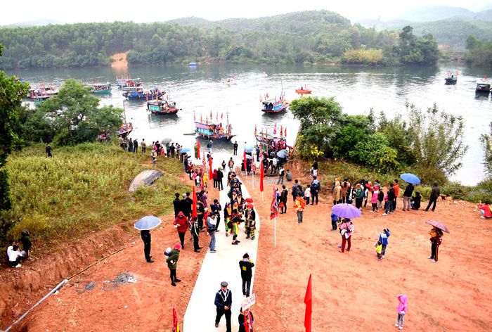 Âm thanh của trống và cồng vang lên, những chiếc thuyền lướt dọc theo sông Ba Chẽ cùng dòng người trên bờ hướng về đền Bàn Vương để cúng lễ với những vật phẩm như ba kích, trà hoa vàng, thuốc nam, ngô, khoai sắn, mía, rau củ, chó, gà, lợn...
