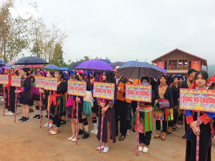 Sớm sáng, đại diện của 12 dòng họ Dao khoác trang phục truyền thống, lộng lẫy tập trung ở bến thuyền và khu vực đền ông để lên đường trên 12 chiếc thuyền biểu tượng cho 12 dòng họ vượt biển đến vùng đất mới.
