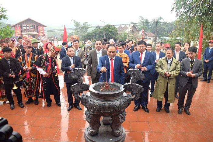 Theo trình tự của 12 dòng họ Dao, họ lần lượt dâng hương, hoa và các vật phẩm lên Bàn Vương với lòng thành kính.