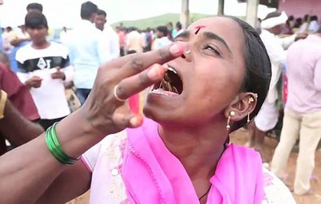 Tại ngôi làng Kandkoor ở Ấn Độ, một cảnh tượng độc đáo diễn ra mỗi năm: người dân cho bò cạp bò lên mặt, tai và thậm chí cả miệng để thể hiện sự tôn vinh thần linh.