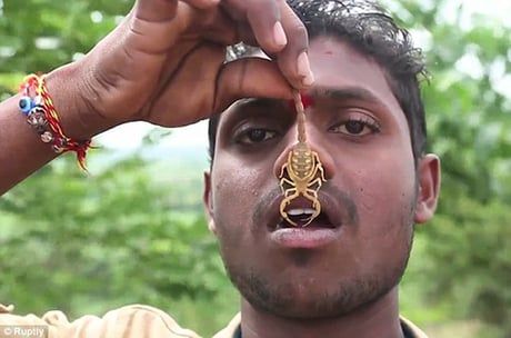 Mỗi năm, vào ngày diễn ra lễ hội Naga Panchami của những người theo đạo Hindu, tại ngôi đền thuộc làng Kandkoor, miền nam Ấn Độ lại diễn ra cảnh tượng khiến nhiều người rùng mình. Tại đây, bò cạp được thả lên cơ thể người dân từ trẻ tới già, đàn ông và đàn bà.