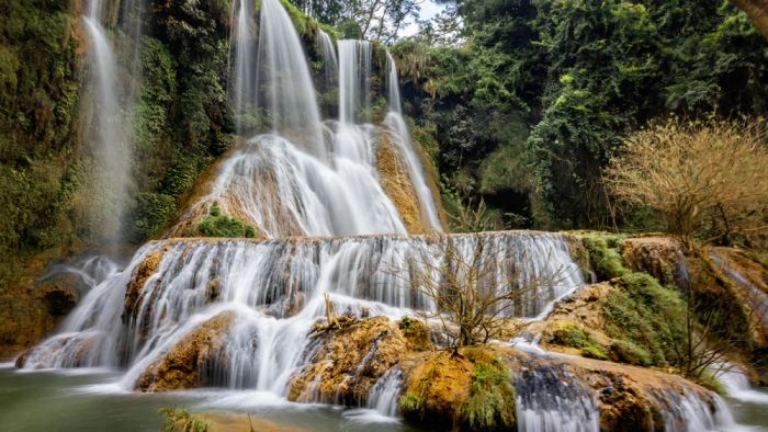 Thác Dải Yếm mang đến trải nghiệm thanh bình, là nơi tuyệt vời để thư giãn, chiêm ngưỡng vẻ đẹp của thác nước và hít thở không khí trong lành của cao nguyên Mộc Châu.