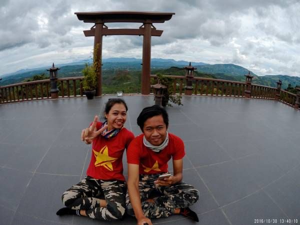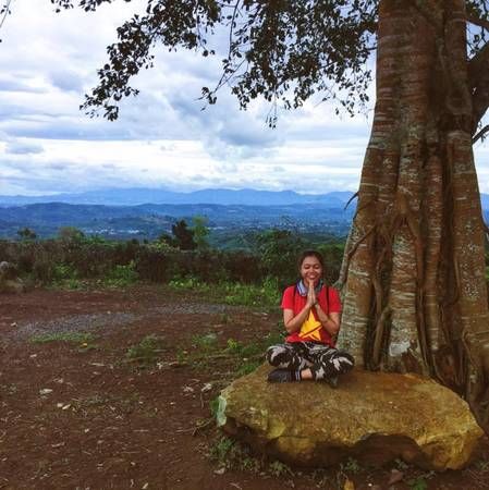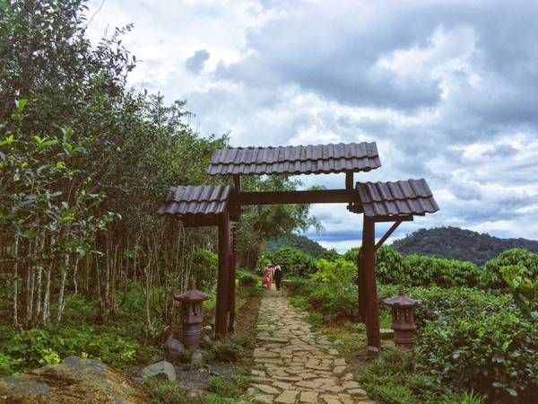 Sau khi đậu xe tại quán nhỏ của một người theo đạo Phật thân thiện, bạn sẽ leo lên núi theo các bậc cầu thang và con đường đất đỏ, cùng với những bông hoa trắng đẹp từ cây chè và cà phê ven đường.