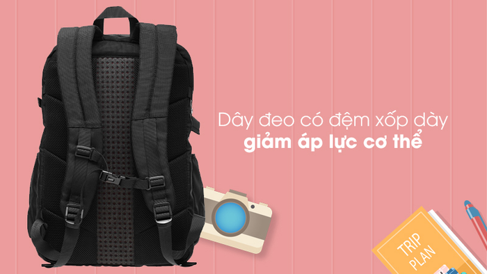 Dây đeo của balo chắc chắn, dễ dàng điều chỉnh chiều dài theo người dùng, được bọc đệm mút êm ái giúp chống đau vai. Balo cũng có ngăn phụ tiện lợi giúp bạn đựng phụ kiện và đồ dùng cá nhân hàng ngày khi đi làm.