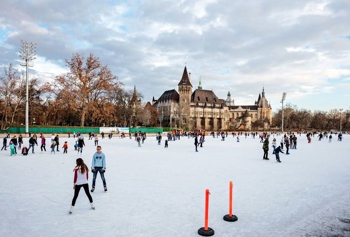 Đường trượt băng ngoại ô giữa mùa đông tại Budapest, Hungary