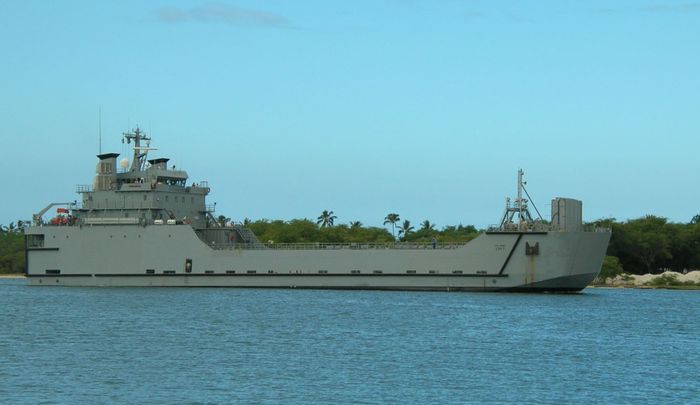 Tàu hỗ trợ hậu cần của Lục quân USAV SSGT Robert T. Kuroda (LSV-7) tại Honolulu, Hawaii, sau chuyến hành trình dài 5,000 dặm từ Pascagoula, bang Missisippi. Ảnh: Wikipedia.