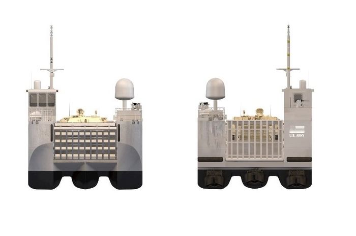Tàu hỗ trợ cơ động hạng nhẹ của Lục quân có phần chìm dưới nước chỉ 1.2 mét khi tải đầy, cho phép nó tiếp cận những bãi biển cạn nhất. Hình dạng đáy kiểu tribow giúp tạo độ ổn định khi neo đậu và đạt tốc độ hơn 20 hải lý/giờ khi chở đầy tải. Ảnh: Vigor.