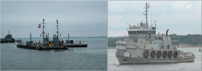 Các tàu đổ bộ tiện ích LCU 2034 và 2035 của Lục quân tại cảng Yokohama năm 2018. Đây là các tàu cơ bản của Lục quân Mỹ được sử dụng chủ yếu cho vận tải, có thân tàu thấp và kích thước nhỏ phù hợp để vận chuyển phương tiện. Hệ thống dốc nghiêng giúp dễ dàng đưa phương tiện lên bờ và ngược lại. (Ảnh: Navsource)Hạm đội hải quân của Lục quânPhần lớn hạm đội của Lục quân gồm các tàu vận tải, trong đó có 8 tàu hỗ trợ hậu cần thuộc lớp General Frank S. Besson. Mỗi chiếc có chiều dài 273 feet (83.2 mét) và trọng tải 4,000 tấn, tương đương với 21 xe tăng M1 Abrams hoặc 25 container vận tải dài 20 feet. Các tàu này có thể di chuyển tới 5,000 dặm (8,046 km).