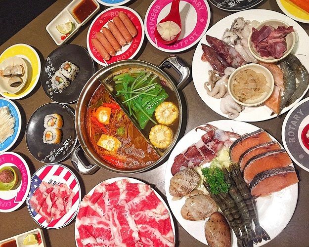 Khi thưởng thức bữa ăn, trước hết bạn hãy lựa chọn loại nước lẩu, như lẩu nấm, lẩu Thái, hoặc nồi hai ngăn kết hợp cả hai loại. Đồ nhúng lẩu được đặt trên băng chuyền, bạn có tự do lấy theo sở thích mà không gặp bất kỳ giới hạn nào.