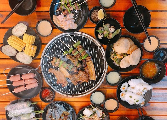 Bạn có tự do lựa chọn những món nướng yêu thích cho bữa ăn của mình. Quán cung cấp đầy đủ nguyên liệu như ba chỉ lợn, nầm lợn, sườn, thịt bò, gà, cá, xúc xích, ngao, tôm, mực,... Các loại rau, củ, quả, nấm, hay trái cây tươi ngon để kèm theo, chống ngán và làm tráng miệng cuối bữa.