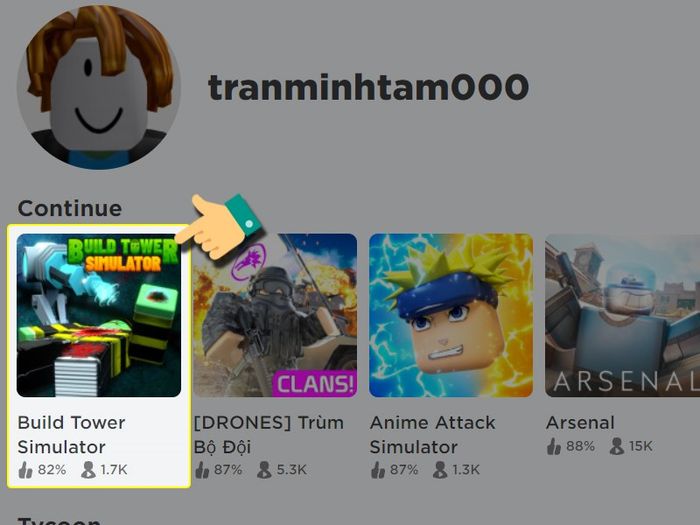 Bước 1: Truy cập Roblox và chọn chế độ chơi Build Tower Simulator.