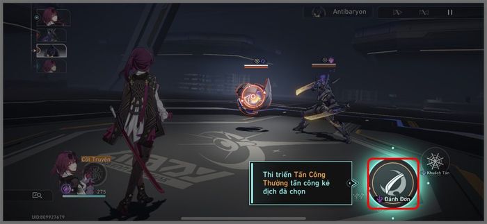 - Bước 1: Nhấn phím Đánh đơn hoặc chạm vào mục tiêu để chuẩn bị cho đòn tấn công. Bạn cũng có thể thay đổi mục tiêu bằng cách vuốt màn hình.