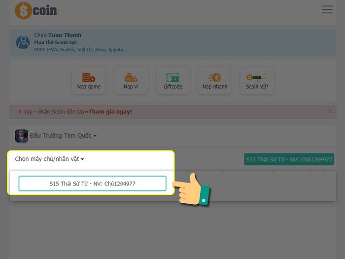 Bạn có thể nạp thẻ game Đấu Trường Tam Quốc tại trang nạp thẻ SCOIN.