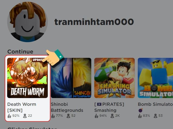 Bước 1: Tìm và Chọn Chế Độ Chơi Death Worm trên Roblox.