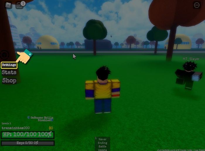 Bước 2: Tiếp theo, trong giao diện DBZ Adventures Unleashed, chọn cài đặt ở phía bên trái.