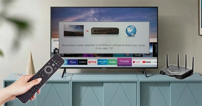 - Tivi Samsung hiển thị thông báo về lỗi kết nối mạng hoặc mã lỗi 107.