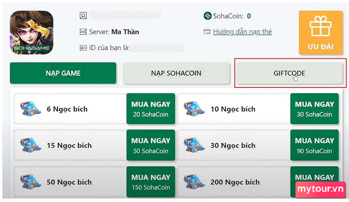 Bước 4: Chọn mục GIFTCODE như trong hình.