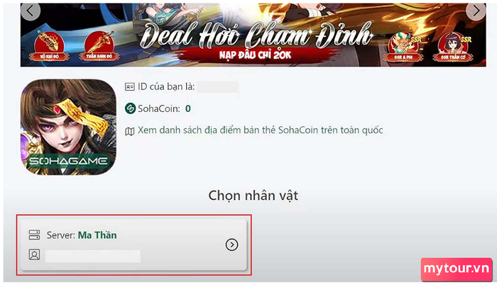Bước 3: Chọn nhân vật và server mà bạn muốn áp dụng mã code Ma Thần Lữ Bố.