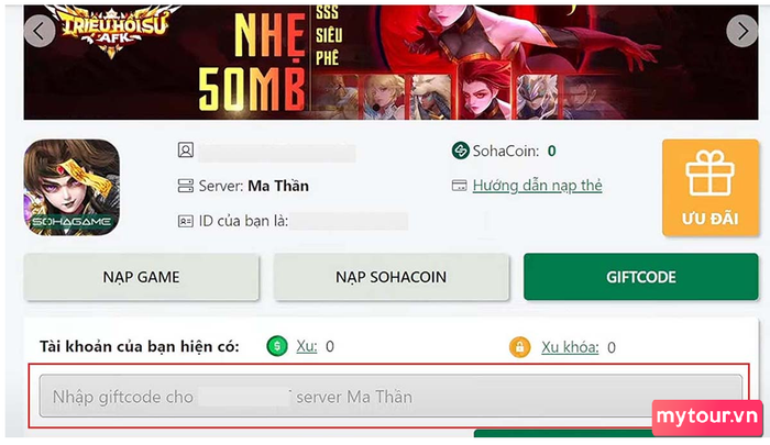 Bước 5: Nhập mã code còn hiệu lực sử dụng.
